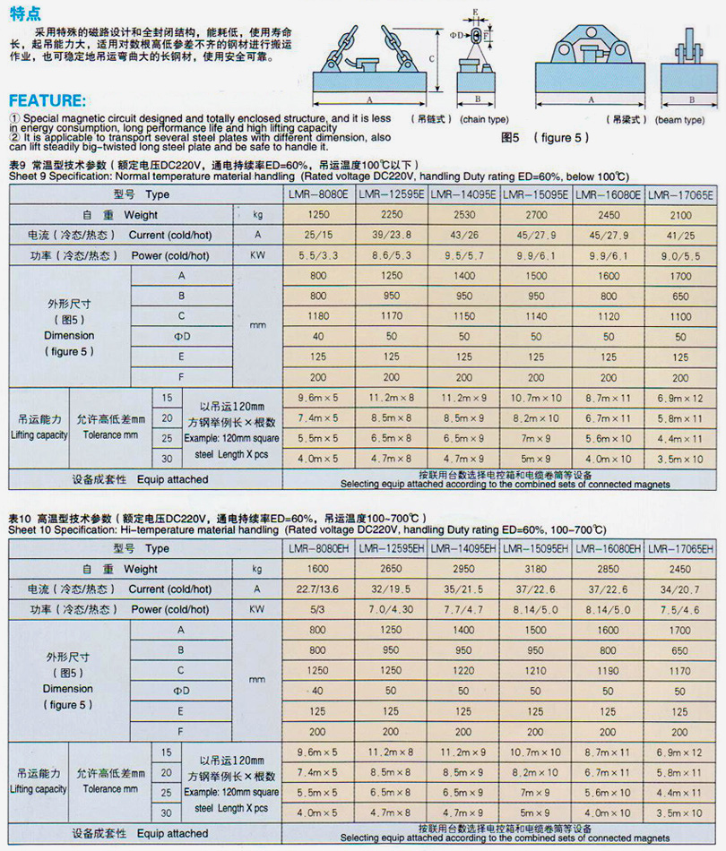 LMR-E系列吊運上下有高低差的長(cháng)鋼坯用矩形起重電磁鐵